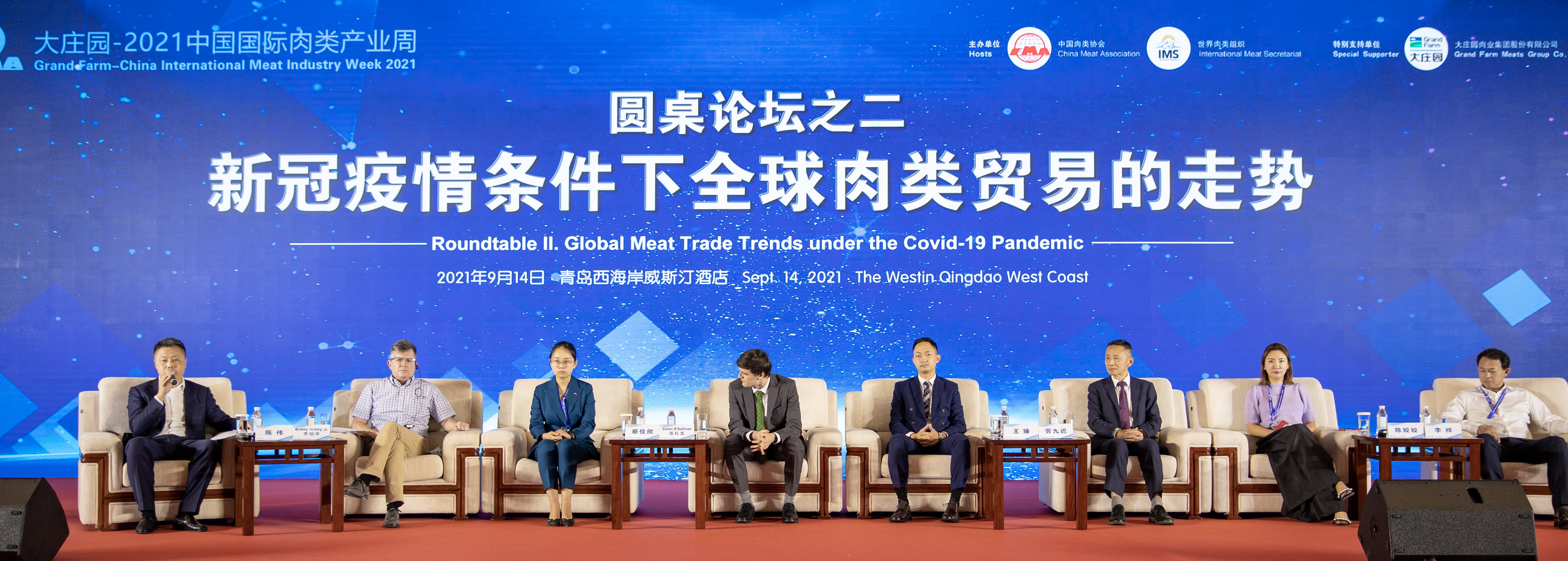 在14日下午舉行的高峰論壇上,大莊園集團常務(wù)副總裁陳姣姣女士與來自北美、南美、歐洲、澳新等地的政府代表、企業(yè)代表齊聚一堂,就“新冠疫情條件下全球肉類貿(mào)易的走勢”,進行了分析與展望。